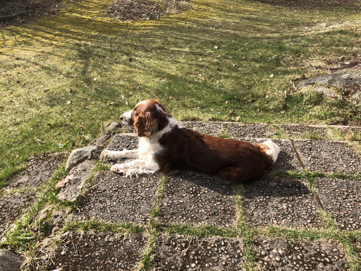 knähund som inte riktig förstår sin storlek På hösten vill Nässla sova i mitt knä, bara det att mitt knä inte är lika rymligt som när hon var valp.